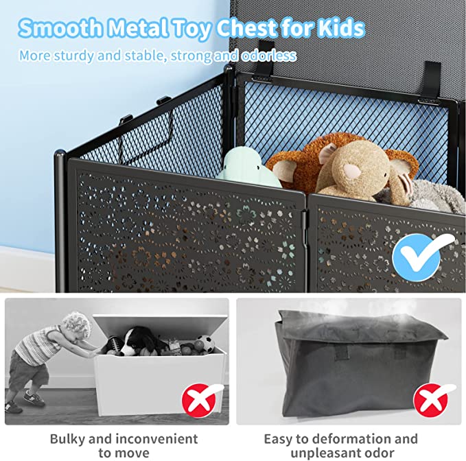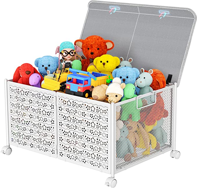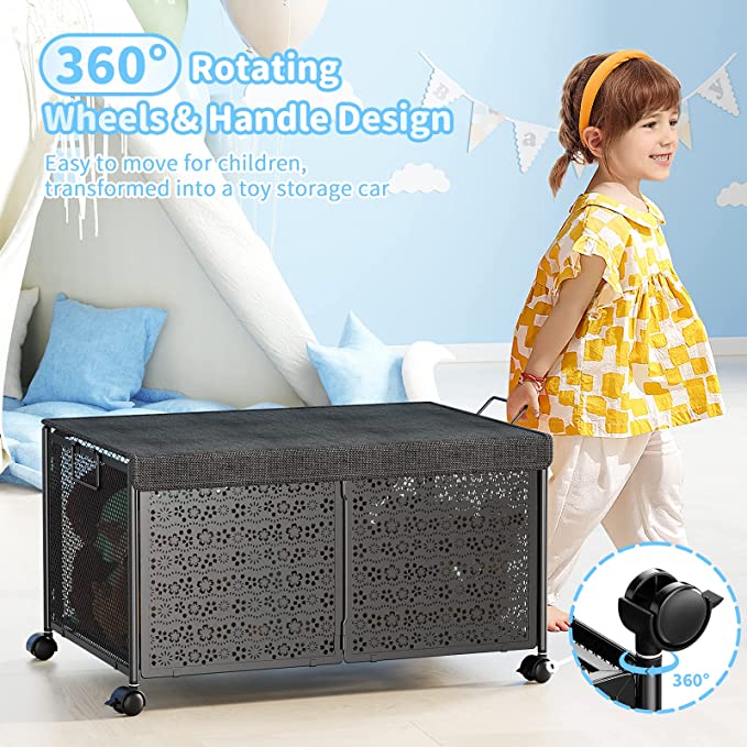 Toy Storage Box With Wheels,Collapsible Metal Kids Toy Storage For Nursery,Playroom