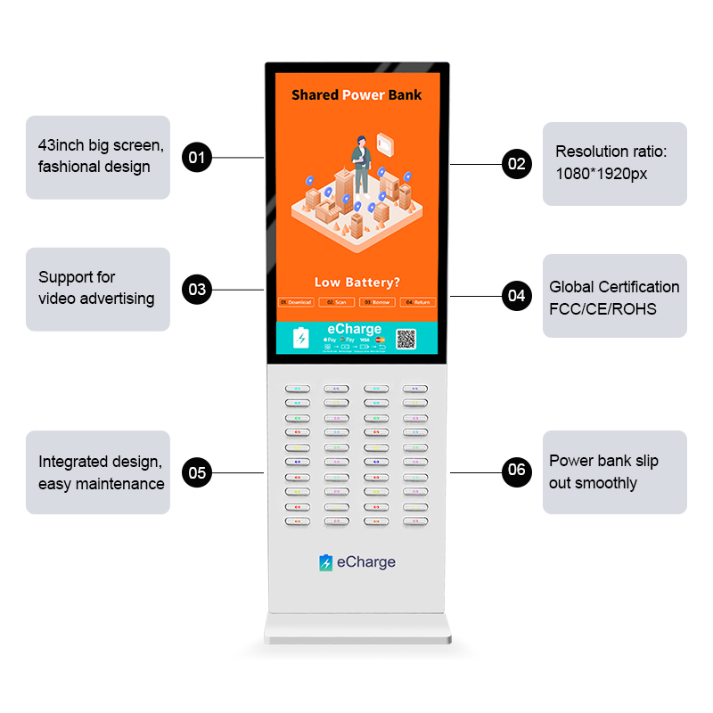 40 Slots Lcd Display Advertise Kiosk Cabinet Power Bank Shops Public Outdoor Rental Charger Station Sharing Power Bank